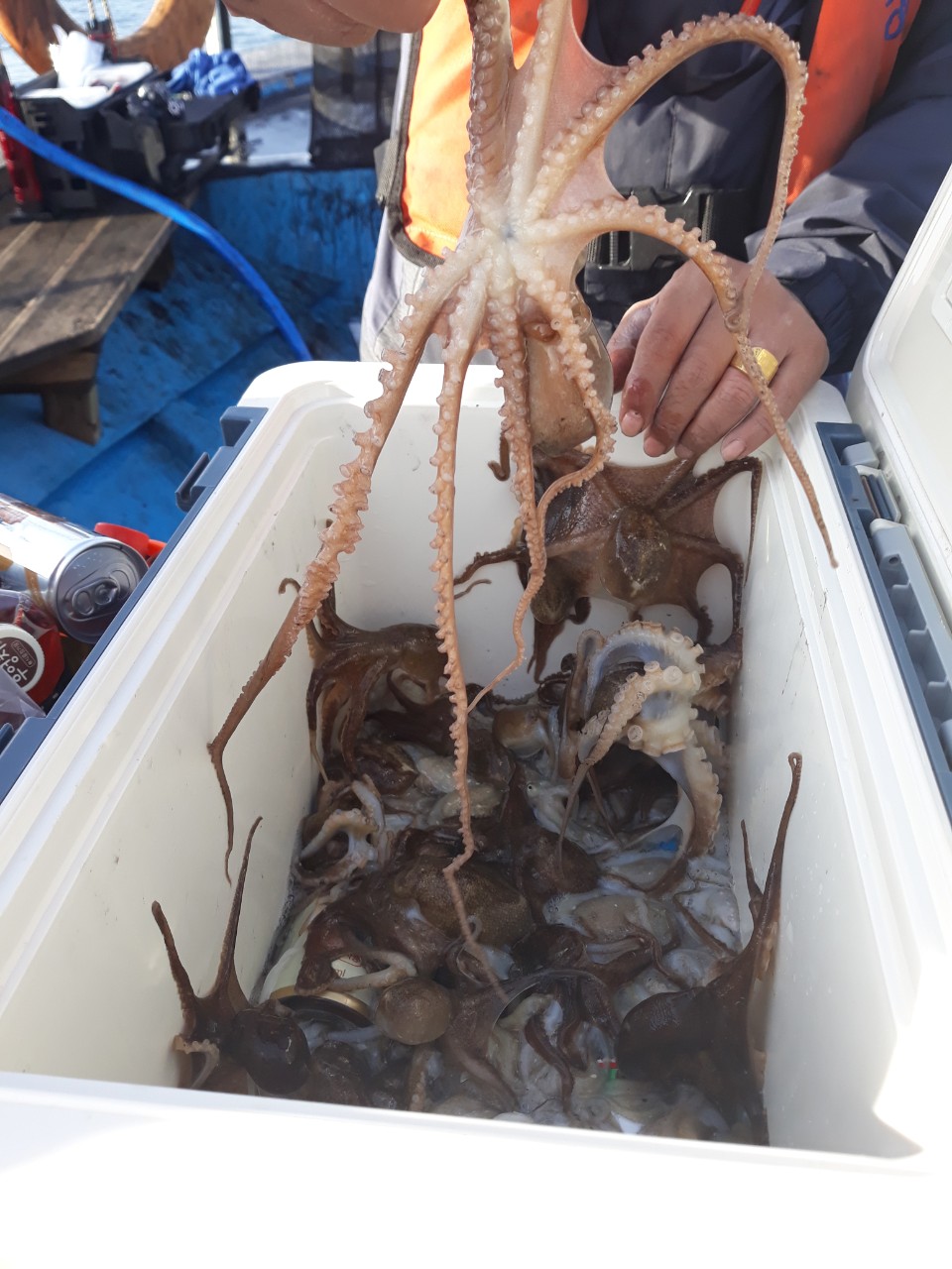 오늘은 오후체험 낚시를 진행하였습니다. 이틀전 태풍 대비로 인하여 출항하지 못하다 오늘 출항하게 되었습니다. 초반에는 물살이 조금 빨라 주꾸미가 잘 잡히지 않았습니다. 하지만 물살이 잔잔해지기 시작하니 주꾸미가 막 올라오기 시작했습니다. 체험낚시를 통해 처음 낚시를 하시는 분이였지만 금세 감을 잡아 많이 잡아 올리셨습니다. 오늘 많이 잡으신 분은 오후만 하셨는데도 불구하고 150수 가량 하셨어요. 오늘도 즐거운 오후체험 낚시였습니다.